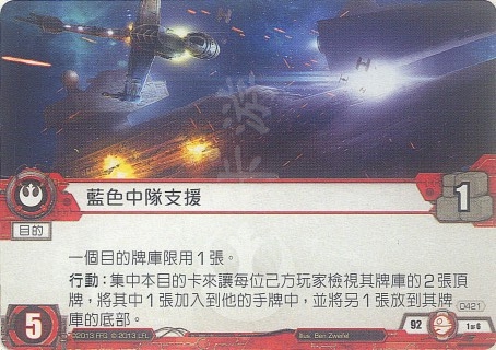 行动:集中本目的卡来让每位己方玩家检视其牌库的2张顶牌,将其中1张加入到他的手牌中,并将另1张牌放到其牌库的底部。
