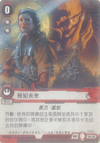 :检视你牌库的3张顶牌并将其中1张加到你手牌中。将其他2张卡牌和本事件卡洗回去你的牌库中。
