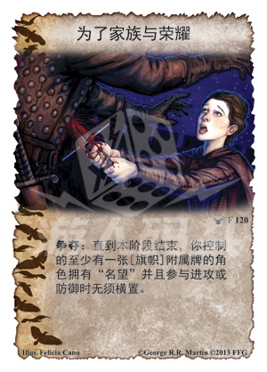 功能说明 争夺:直到本阶段结束,你控制至少有一张[旗帜]附属牌的角色拥有”名望“并且参与进攻或防御时无须横置。