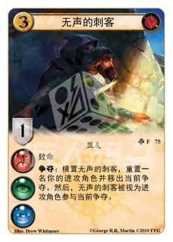 :横置无声的刺客,重置一名你的进攻角色并移出当前争夺。然后,无声的刺客被视为进攻角色参与当前争夺。